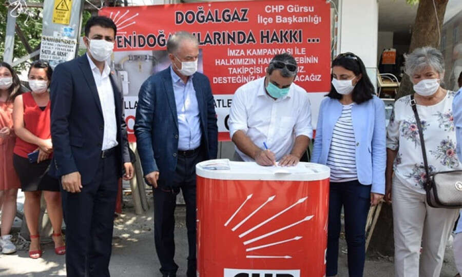 Bursa'nın Gürsu ilçesinde CHP Gürsu İlçe Yönetimi tarafından Yenidoğan Mahallesine doğalgaz getirilmesi istemiyle imza kampanyası başlatıldı.
