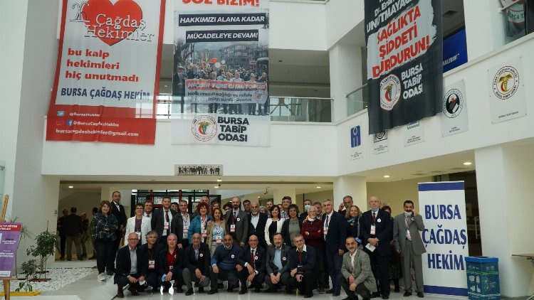 Bursa Tabip Odası’nın Bursa Akademik Odalar Birliği’nde (BAOB) gerçekleştirilen Genel Kurulunun açış konuşmasını yapan BTO Başkanı Doç. Dr. Alpaslan Türkkan, Kovid-19 ve şiddet nedeniyle yaşamını yitiren meslektaşlarını andı. Vatandaşların sorunlarına acil servilerde çözüm bulmaya çalıştığını bildiklerini söyleyen Türkkan, “Bu kötü bir sistem. Vatandaşlarımız genel sağlık sigortası primini ödeyemez hale geldi. İnsanlar sağlık hizmetine eriştiklerinde cepten ödedikleri parayla yoksullaşıyorlar. Yukarıdan yapılan atamalarla, liyakata önem verilmemesiyle sorunlarımız daha da büyüdü. Hakkımızı alamadık, şiddete mağruz kaldık. Dünyadaki en düşük hekim maaşını bize verdiler" dedi.