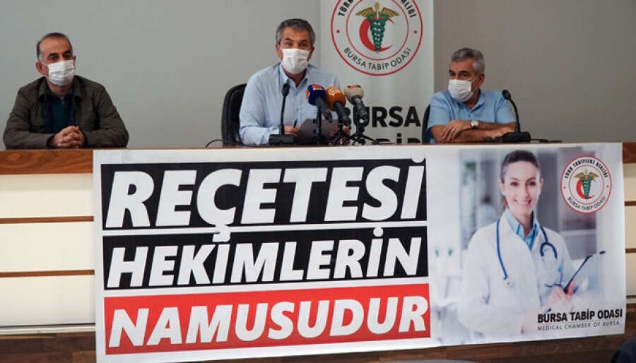 Alpaslan Türkkan, Bursa'da hekimlere baskı yapıldığı, tedavilerine ve reçetelerine karışıldığı yönünde yakınmaları bir süredir kendilerine ulaştığını belirttiği açıklamasında şunları söyledi: