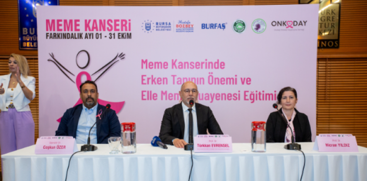 Bursa Büyükşehir Belediyesi, Bursa Kent Konseyi Kadın Meclisi, BURFAŞ ve Onkoday (Uludağ Onkoloji Dayanışma Derneği) iş birliğiyle Merinos AKKM - Hüdavendigar Salonu’nda gerçekleştirilen etkinlikte meme kanseri farkındalığını artırmak amacıyla uzman doktorlar tarafından eğitim verildi. Etkinlikte katılımcılara, meme kanserinin erken teşhisi için kendi kendine meme muayenesinin nasıl yapılacağı da anlatıldı.