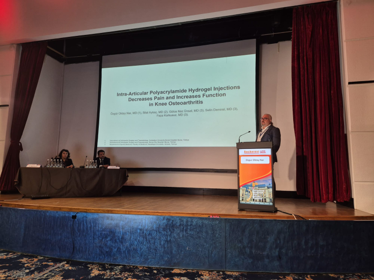 Ortopedi ve Travmatoloji Uzmanı Op. Dr. Özgür Oktay Nar, Bükreş'te düzenlenen 8. Uluslararası Eklem İçi Tedaviler Sempozyumu'na katılarak, diz osteoartrit tedavisinde polimerik jelin etkinliği üzerine bir sunum yaptı.