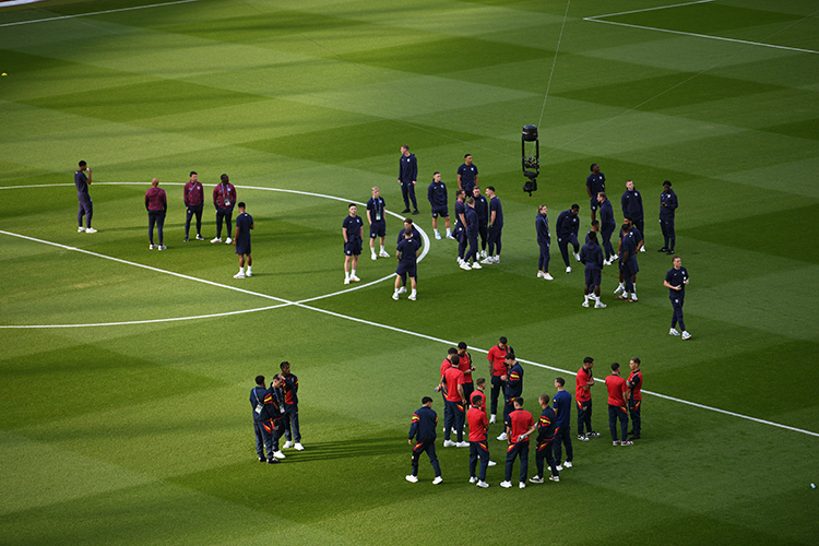 Karşılaşmanın ilk yarısı orta saha mücadelesi şeklinde geçti. İlk 45 dakikada meşin yuvarlak büyük oranda İspanya'nın ayağında kalırken 45+1. dakikada İngiltere'nin duran toptan bulduğu pozisyon haricinde önemli bir gol girişimi olmadı.
