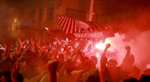 Şampiyonluğu meşale yakarak ve birbirlerine sarılarak kutlayan kırmızı-siyahlı taraftarlar, daha sonra stattan ayrıldı ve kutlamalara Karagümrük sokaklarında devam etti.