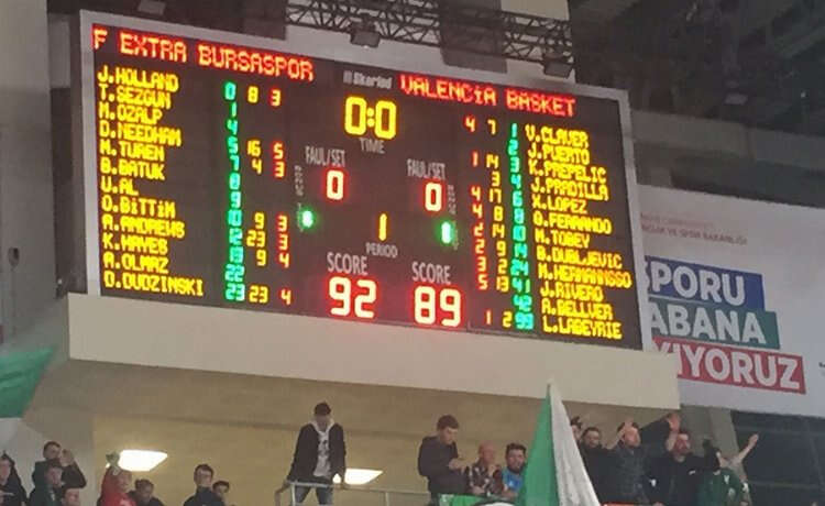 Basketbol ULEB Avrupa Kupası'nın B Grubu maçında Frutti Extra Bursaspor İspanya'nın Valencia Basket takımını 92-89 yendi.