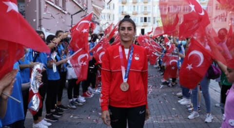 Tokyo 2020'de bronz madalya kazanan milli tekvandocu Hatice Kübra İlgün, Bursa'da coşkuyla karşılandı.
