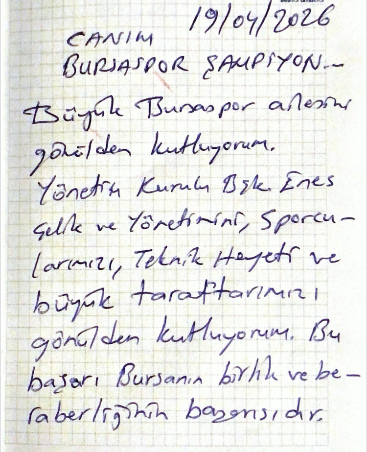 Bursa Büyükşehir Belediye Başkanı Mustafa Bozbey’in sosyal medya hesabından paylaştığı mektup şöyle: