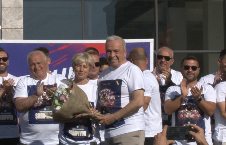 Tören sırasında Başkan Özdemir, takımın kadın başantrenörü İlknur Kurtuluş’a çiçek takdim ederek, tarihi başarısından dolayı tebrik etti. Ardından oyuncuları tek tek kutlayıp hediye verdi.