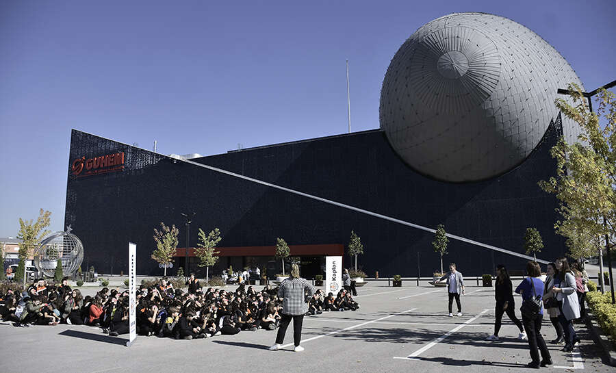 Avrupa'nın önemli uzay ve havacılık temalı interaktif eğitim merkezlerinden biri olan Gökmen Uzay Havacılık Eğitim Merkezi'nin (GUHEM) bahçesinde toplanan yaklaşık 300 öğrenci, merkezin tutulma için hazırladığı "güneş gözlemcisi" gözlüğü ve teleskopla parçalı güneş tutulmasını gözlemledi.