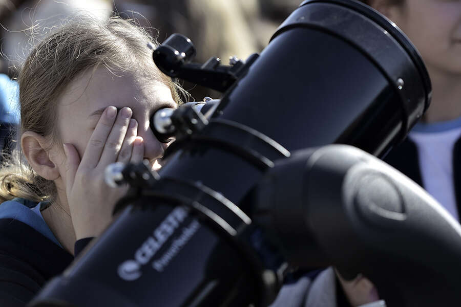Çocuklar, etkinliktemerak ve heyecanlı gözlerle güneş tutulmasını takip etti.