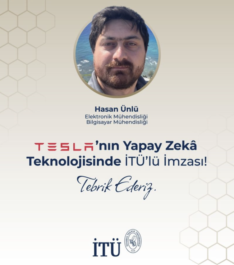 İstanbul Teknik Üniversitesi (İTÜ) Elektronik ve Bilgisayar Mühendisliği bölümlerinden 2011 yılında bölüm birincisi olarak mezun olan Hasan Ünlü, Tesla’nın sürücüsüz araçlarda kullandığı yapay zekâ teknolojisine ilişkin dört yeni patentin ikisinde başyazar, ikisinde ise ikinci yazar olarak imza atarak Türkiye'yi gururlandırdı. Tesla'nın sahibi Elon Musk, firmasına kazandırılan bu başarıyı X hesabından paylaştı.