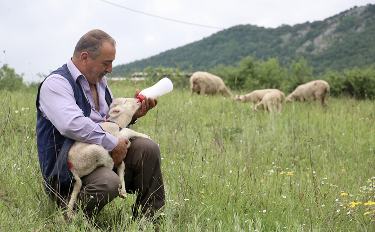 "15 koyunla başladık. İki senedir hayvancılık yapıyoruz. Şimdi hayvanlarımız 50'nin üzerine çıktı. Yeni doğan kuzularımız var. Yavrulama dönemi henüz bitmedi. Yaklaşık 35 kuzumuz var, bunlardan biri de 'Osman' dediğimiz kuzumuz. Annesi ikiz doğum yaptı, birini kabul etmedi. Biz de buna anne baba olduk. Aileden biri oldu. Biz besleyip büyütüyoruz. Annesinden süt sağıp biberonla besliyoruz. O da bizi bırakmadı. Birlikte arkadaş gibi vakit geçiriyoruz. Henüz 20 günlük. Önümüzdeki haftalarda merada ot yemeye başlayacak ama bizden de ayrılmıyor. Arabaya biniyor. Bazen koşup odamıza kadar giriyor."