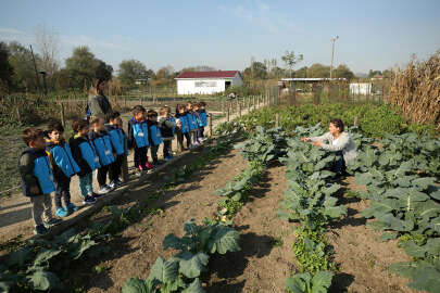 Nilüfer Belediyesi’nin Ürünlü Mahallesi’nde ekolojik tarım koşullarında üretim yaptığı Kent Bostanları, anaokulu öğrencilerini ağırladı.