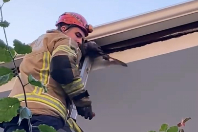 Çatıya sıkışan kuş itfaiye tarafından kurtarıldı