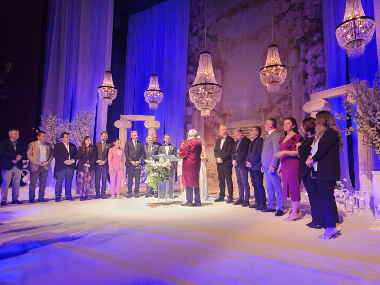 Şahin ve Bayram çiftinin görkemli nikah merasimi, Atatürk Kongre ve Kültür Merkezi Osmangazi Salonu'nda saat 16.00'da gerçekleştirildi.