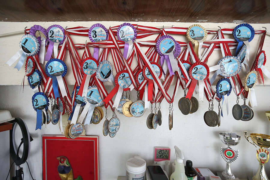 Gökkuşağı ispinozu, papağan ispinozu, minyatür kumru, sevda papağanı başta olmak üzere farklı türlerden 600'ü aşkın kuş besleyen Uzun, yurt içi ve yurt dışında katıldığı güzellik yarışmalarından kazandığı onlarca kupa ve madalyayı terasında sergiliyor.