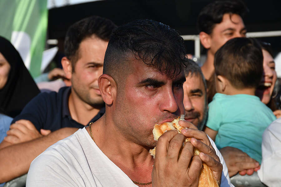 Merinos Parkı'ndaki festivalde "En Fazla Börek Yeme Yarışması"na başvuran 52 yarışmacı, ödül için kıyasıya mücadele etti.