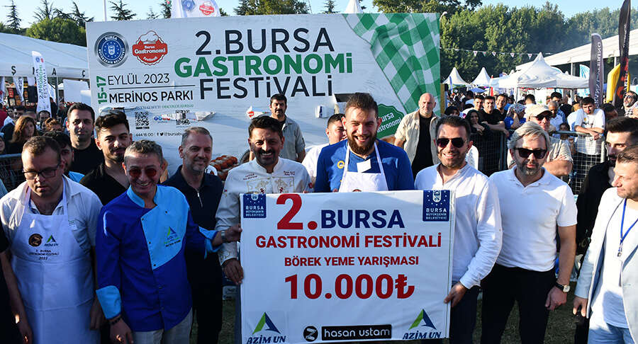 Bursa Büyükşehir Belediyesince düzenlenen 2. Bursa Gastronomi Festivali'nde börek yeme yarışması yapıldı.