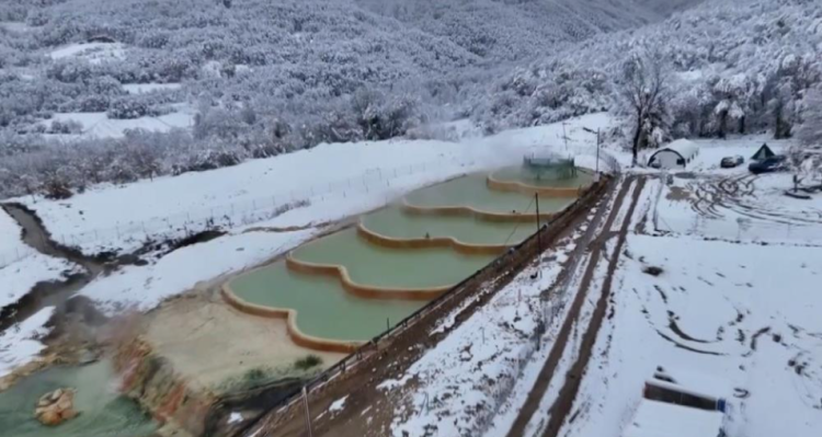 Eksi 10 derecede karla kaplı dağların arasında doğal termal keyfi