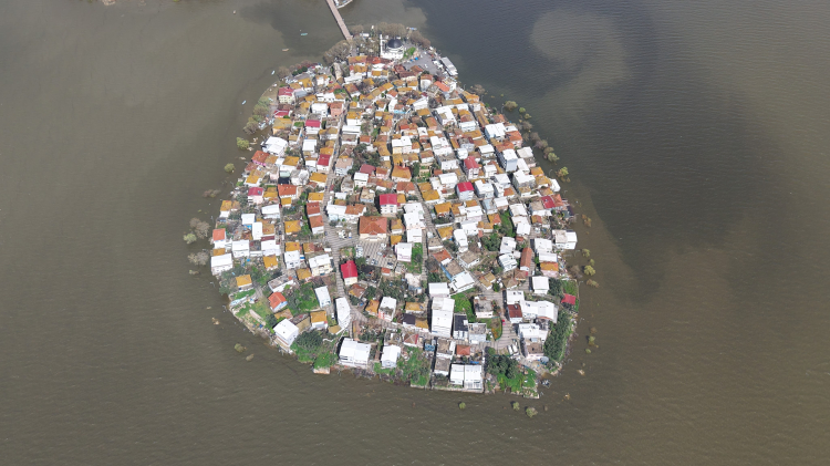 "Küçük Venedik" olarak nitelendirilen mahallede duvar diplerine kadar gelen su, binaların doğrudan gölün içindeymiş gibi görünmesine yol açtı.