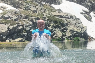 Bursalı dağcılar, Haziran ayında Uludağ'ın buz tutan gölünde yüzdü. Yaklaşık 2200 metre yükseklikte bulunan, eşsiz manzarasıyla doğa yürüyüşü yapan grupları kendisine hayran bırakan Buzlu Göl'e giren Yüksel Esen keyif yaptı.