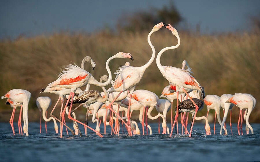 Bursa ile Venedik arasında bir bağ oluşturan flamingolar yaz mevsimini Venedik'te bulunan Po Deltası'nda geçirdikten sonra kışlama alanı olan Bursa'nın Karacabey ilçesindeki Kocaçay Deltası'na dönmeye başladı.