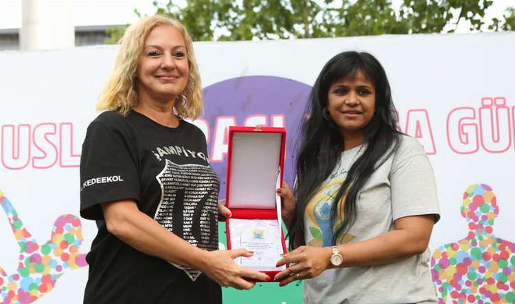 Konuşmaların ardından Hindistan’ın İstanbul Konsolosu Sudhi Choudhary ve Nilüfer Belediye Başkan Yardımcısı Dr. Sibel Özer de düzenlenen yoga eğitimlerine katıldı. Hindistan’ın İstanbul Konsolosu Sudhi Choudhary, Dr. Sibel Özer ve emeği geçenlere günün anısına teşekkür plaketi verdi.