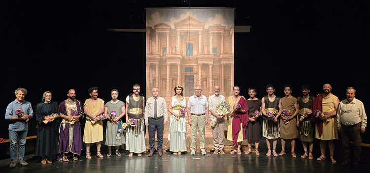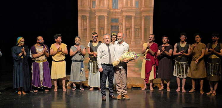 Bir Efes Masalı oyununun sonunda sahnede Yönetmen İzzet Boğa, Bursa Barosu Başkanı Metin Öztosun, Bursa Barosu eski başkanları Ali Arabacı ve Ekrem Demiröz, oyunun müziklerinin bestecisi Nedim Yıldız ve oyuncular bir arada...