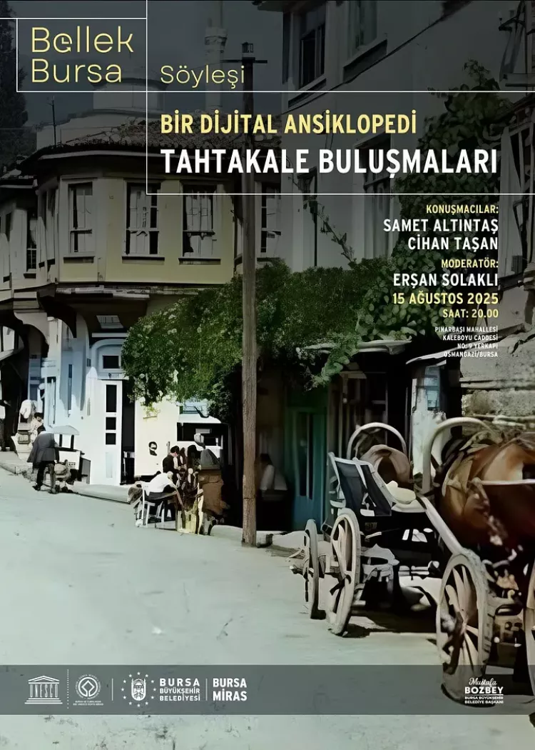 Bursa Büyükşehir Belediyesi Kent Tarihi ve Tanıtımı Dairesi Başkanlığına bağlı Kent Tarihi Araştırmaları ve Arşiv Şube Müdürlüğü tarafından başlatılan ‘Bursa Bellek-Kent Tarihi Söyleşileri’ ile Bursa’da doğmuş, büyümüş veya hayatının bir kısmını Bursa’da geçirmiş sanatçıların kent anıları kayıt altına alınıyor. Her ay farklı bir sanatçının konuk edildiği söyleşinin 16 Ağustos Cumartesi günkü konukları, ‘Tahtakale Buluşmaları’nı başlatan ve sürdüren Samet Altıntaş ve Cihan Taşan oldu.