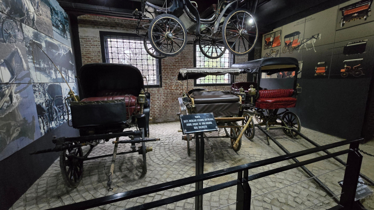 Müzede Türkiye'nin çeşitli illerinden getirilen kağnılar, at ve öküz arabaları, top arabaları, ot arabası, odun arabası gibi pek çok araba, panyolar, çarklılar, yarım esebey, Briçka gibi tarihi arabalar mevcut.