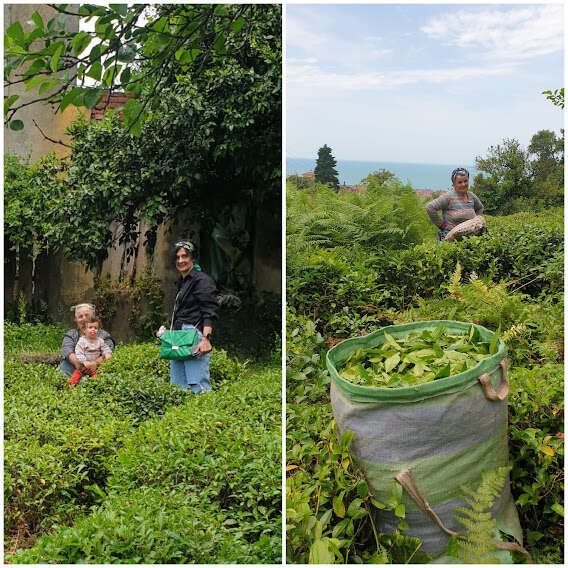 Dokumacı kadınları ardımızda bırakıp Çayeli'ne doğru yürümeye devam ederken, çaylıkta biri çay toplayan, biri de kucatoplayan kadının torunuymuş.