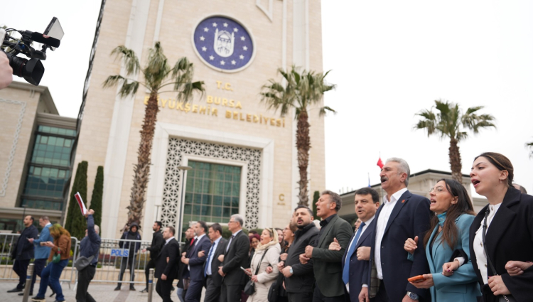 Kent Meydanı’na vardığımızda CHP’lilerden bir grup oturma eylemine başlamış, bir grup da Kayışoğlu ile birlikte yakındaki hastanedeydi. Sanırım bir saati aşkın bekledik. Beklerken küçük kalabalıktaki insanların yüzlerine baktım, kendi aralarında konuştuklarını bile isteye dinledim. Ne kadar öfkeli, ne kadar üzgün, ne kadar sinirden gülen, ne kadar umudunu tüketmiş insan vardı. Öyle umutsuzlardı ki kimse birbirini dinlemiyordu sanki. Derken hastane ekibi geldi. Bursa’nın işgaline atıf yaparak ellerinde “puşide-i siyah” ile meydanda son bir açıklama yaptılar. O arada Büyükşehir Meclisindeki seçim bitmiş, Şahin Biba 61 oyla başkan vekili seçilmiş, CHP’nin 47 yıl sonra kazandığı Bursa Belediyesi 2 yıl sonra yeniden AKP’ye geçmişti.