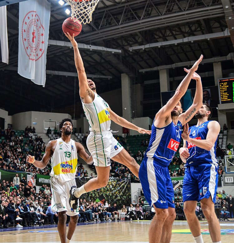 Onuralp Bitim, Kevarrius Hayes, Andrew Andrews, Derek Needham ve Dave Dudzinski beşiyle çıkıp, hücumlarda cömert davranıp boş dönünce yeşil beyazlılar ‘eyvah’ dedi tribünler.
