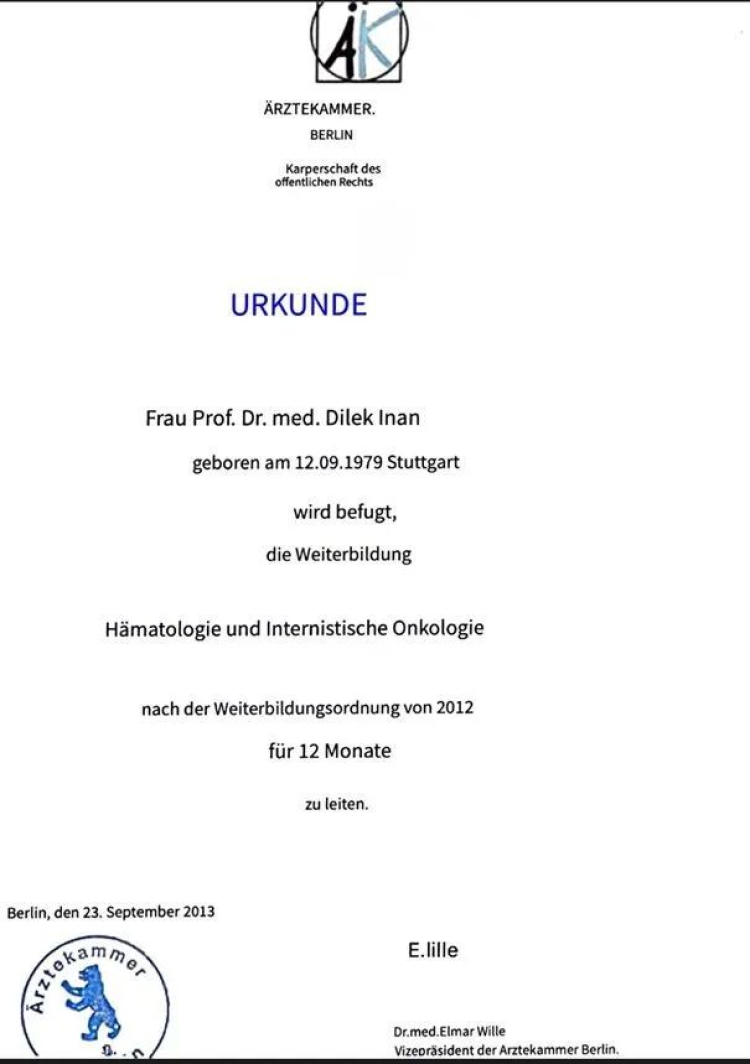 Dilek İnan'ın anlattıklarının hiçbir doğruluk payı bulunmuyor. Kendisi de bir profesör veya doktor değil. Bursa Tabip Odası, Dilek İnan'ın 'sahte' ünvanı hakkında 11 Şubat'ta açıklama yapacak. BTO'dan gelen basın davetinde de "İddiaların, hem tıbbi gerçeklik hem de hekimlik ve akademik unvanların kamusal kullanımı açısından yarattığı soru işaretleri üzerine Bursa Tabip Odası tarafından ilgili Alman resmî kurumlarına yazılı başvuruda bulunulmuştur. Berlin Tabip Odası’ndan gelen resmî yanıtta; kamuoyuna sunulan belgelerden birinin kendileri tarafından düzenlenmediği ve sahte olduğu, ayrıca ilgili kişinin Berlin Tabip Odası’na hiçbir zaman üye olmadığı açıkça ifade edilmiştir" deniyor.