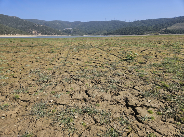 Aksu Deresi de kurumuş. Köylüler tarım arazilerini sulamak için Aksu Deresi’ni kullanıyorlar, su üst köylerde bitiyor, gölete ulaşamıyor. Göletin suyu hem kuraklık hem beslenen kaynağın kuruması nedeniyle yaklaşık 1,5 kilometre çekilmiş durumda. Su birikintisi kalmış. Çevredeki köylülerin ekinlerini sulaması için Devlet Su İşleri tarafından yapılan su kanalları bulunuyor. Bulunuyor ama gölde su olmadığı için su kanalları kapalı. DSİ yetkilileri, oturdukları yerden “Göletimizde su yok, yağışları bekliyoruz” diyor.