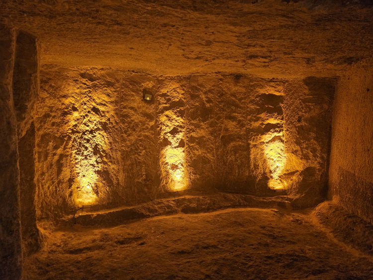Midyat’a ismini veren yaklaşık 5 bin yıllık bir geçmişe sahip Matiate Yeraltı Kenti, henüz ziyarete açılmamış olsa da kısıtlı bir alanı gezme şansımız oldu. Estel Konukevi’nin yeraltına inen merdivenleri konaktaki ev yaşamından daha büyüleyici.