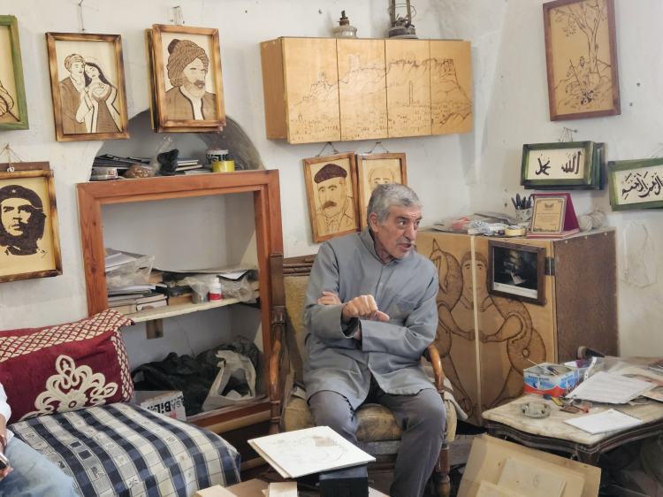 Mehmet Selim Gökçen’in atölyesinden geçiyoruz. Taş ustası Gökçen. Üniversite mezunu olmayabilir ama Güzel Sanatlar Fakültesi’nde ders veriyor. Gökçen, Yaşayan insan hazinesi somut olmayan kültürel miras taşıyıcısı. Mardin’in kireç taşları hakkında da bir raporu var.
