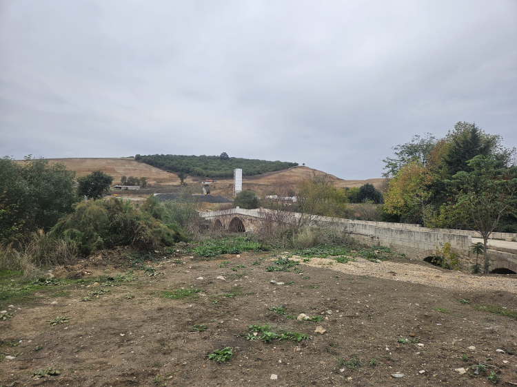 Balat tarafından başladığımız, Nilüfer Çayı’nı takip ederek köyleri dolaştığımız geziyi burnumuzu kapatarak yapmak zorunda kaldık. Balat girişinde Nilüfer Çayı’nın Hasköy’e doğru uzanan akışında sorun çıktığı için tamamlanmayan, yıllardır âtıl vaziyette kalan beton iskeletleri çirkin tablonun başlangıcıydı. Arkada Şehir Hastanesi’nin bir ucunun göründüğü, tarihi köprüden yarısı Hızlı Tren çalışmasının sürdüğü tıraşlanmış ormana bakarken belki de son kez tarihi bir köprüyü fotoğraflamış olacağımızı düşündük. Çünkü sokak köpeklerinin mesken tuttuğu bu köprü, vahşi endüstrinin gözünde bir taş yığınıydı sadece ve yok olması gerekiyordu.