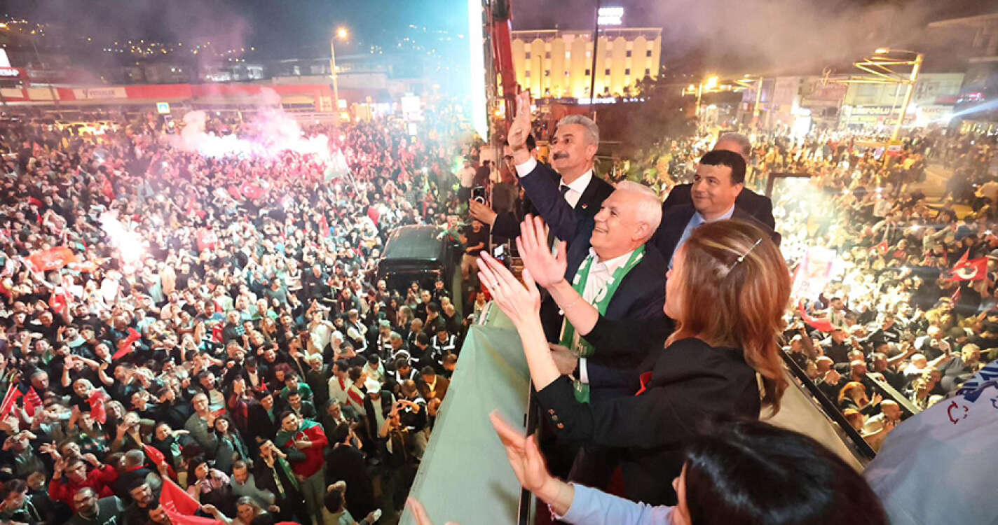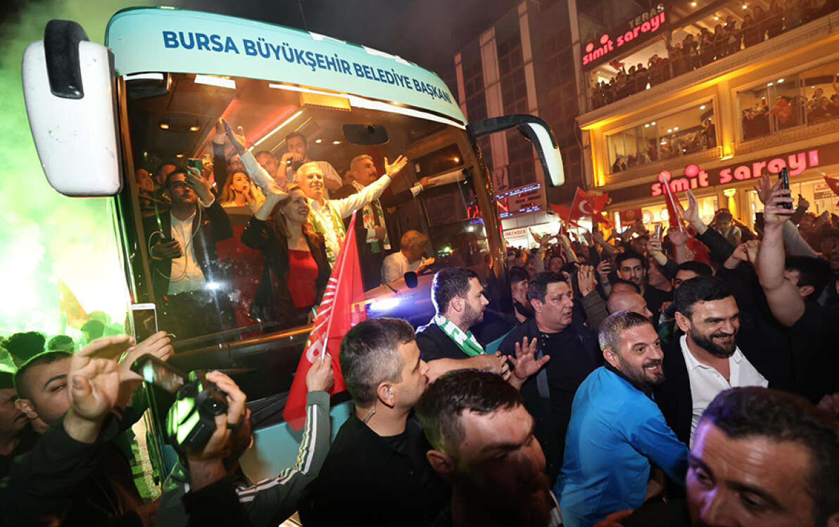 Seçim sonuçlarını Podyum Davet’te kurulan karargahtan takip eden Mustafa Bozbey, beş yılın sonunda elde ettiği zaferin sevincini Kent Meydanı’nda toplanan Bursalılarla paylaştı. Çok sayıda partili ve vatandaş da CHP’nin seçim zaferini caddelerde oluşturdukları araç konvoyları ile kutladı.