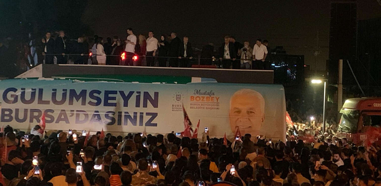 Bozbey’in seçim otobüsünde milletvekilleri Nurhayat Altaca Kayışoğlu, Orhan Sarıbal, Hasan Öztürk ile Osmangazi, Nilüfer, Mudanya, Gemlik ve Mustafakemalpaşa'da seçimi kazanan Erkan Aydın, Şadi Özdemir, Deniz Dalgıç, Şükrü Deviren ve Şükrü Erdem hazır bulundu. Harmancık Belediye Başkanı seçilen Haşim Ali Arıkan, yol uzak olduğu için Kent Meydanı'ndaki kutlamaya yetişemedi anlaşılan.