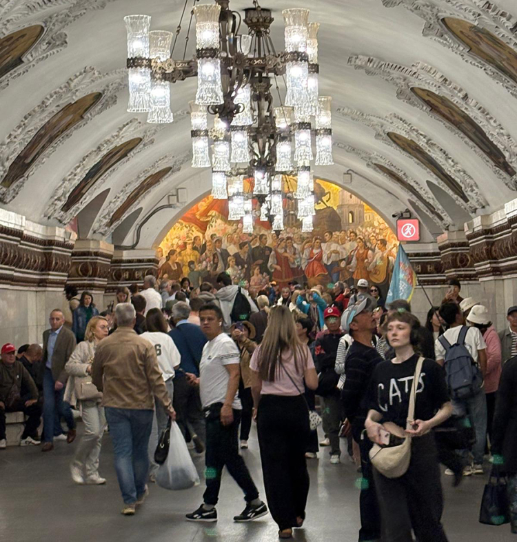 Dünyanın en eski ve büyük ve güzel metrolarından biri olan Moskova metrosundan bahsetmeden geçmek olmaz. Moskova Metrosu’nun görünce, “Burası metro ise bizim Bursa’daki nedir?” diye sormadan edemedim ve kendimi çok kötü hissettim. İnşasına 1931 yılında Stalin döneminde başlanan metronun 182 istasyonunun her biri ayrı bir müze adeta. Duvarlar tablolar, resimler, rölyef ve heykellerle süslü. Tarihi metro turistlerin en çok ilgisini çeken yerlerden birisi. Toplam 12 hattın bulunduğu Moskova Metrosu'nda her hattın kendine ait ismi ve rengi bulunuyor. Saat sabah 05.30 ile gece 01.00 arasında toplam 19,5 saat aralıksız çalışan Moskova Metrosu, yoğun saatlerde 90 saniye aralıklı seferler yapıyor.